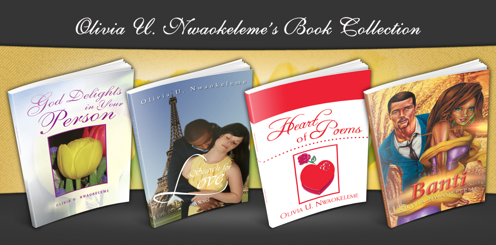 Four books by Olivia U. Nwaokeleme display diversity in her talent as a writer. Her first, God Delights in Your Person, is an inspirational and poetic paean to God’s mercy and truth. Her fourth one is a novel, a fictional work entitled Banti where Olivia continues her bent for complex tales of passion and destiny with unique characters and settings.